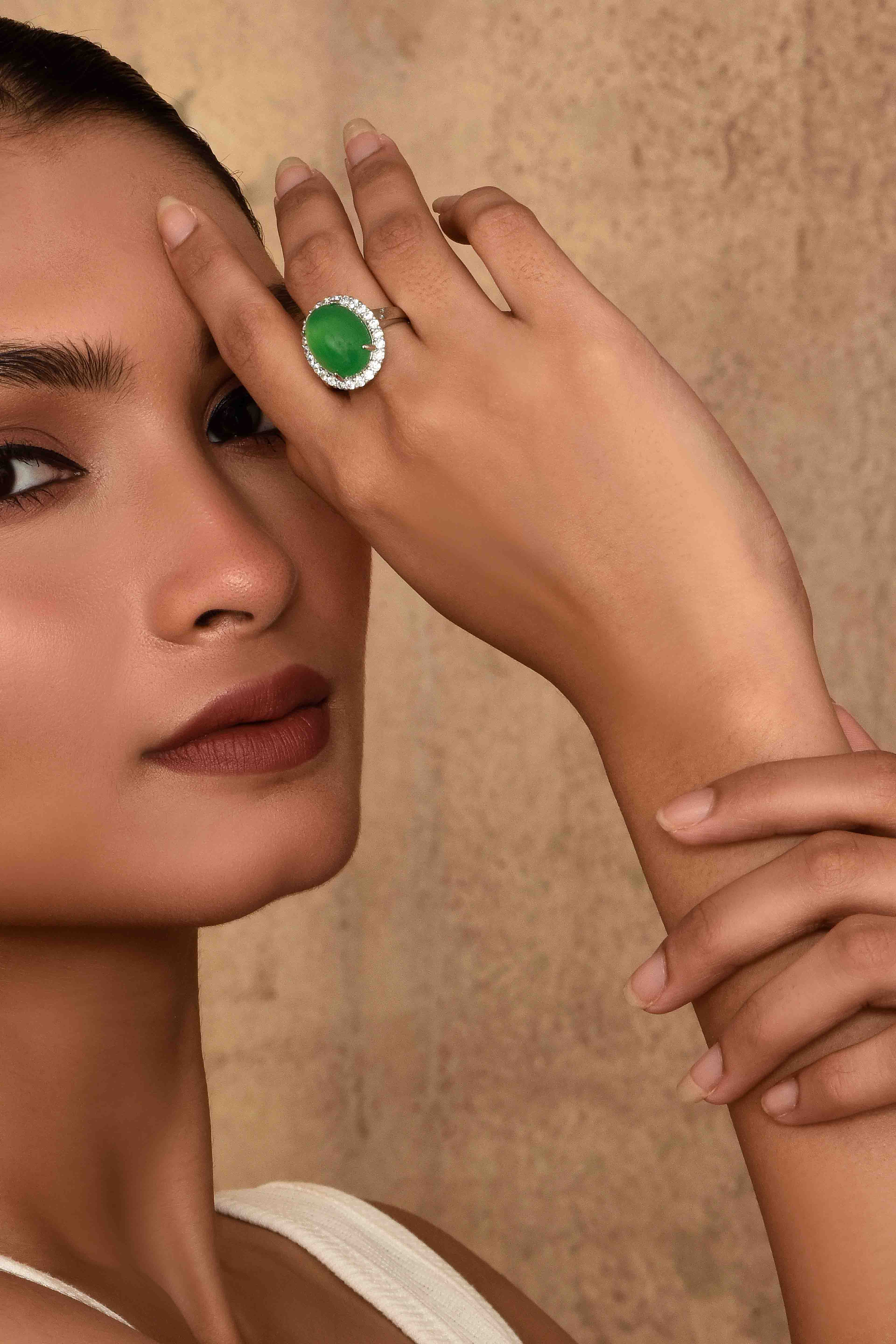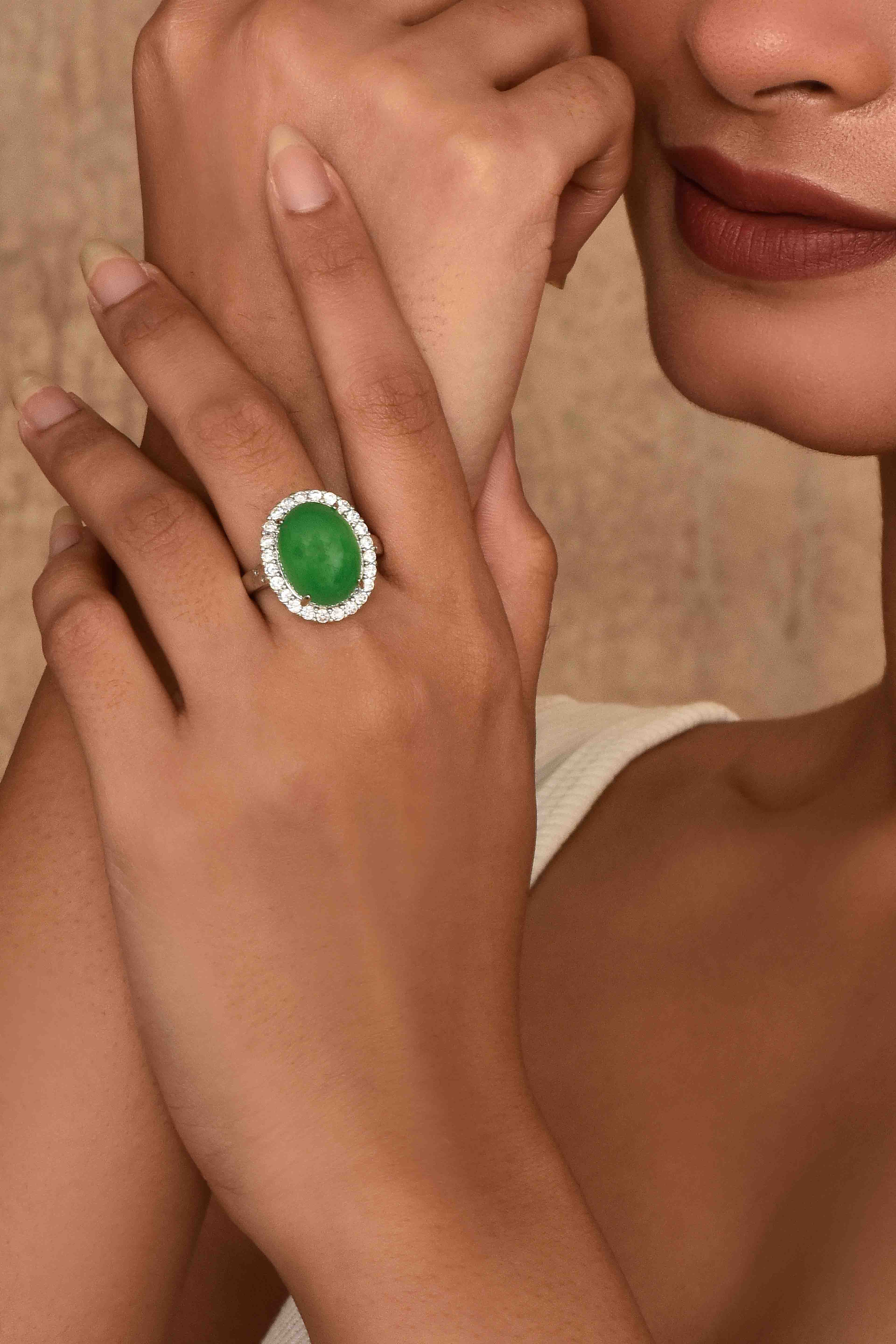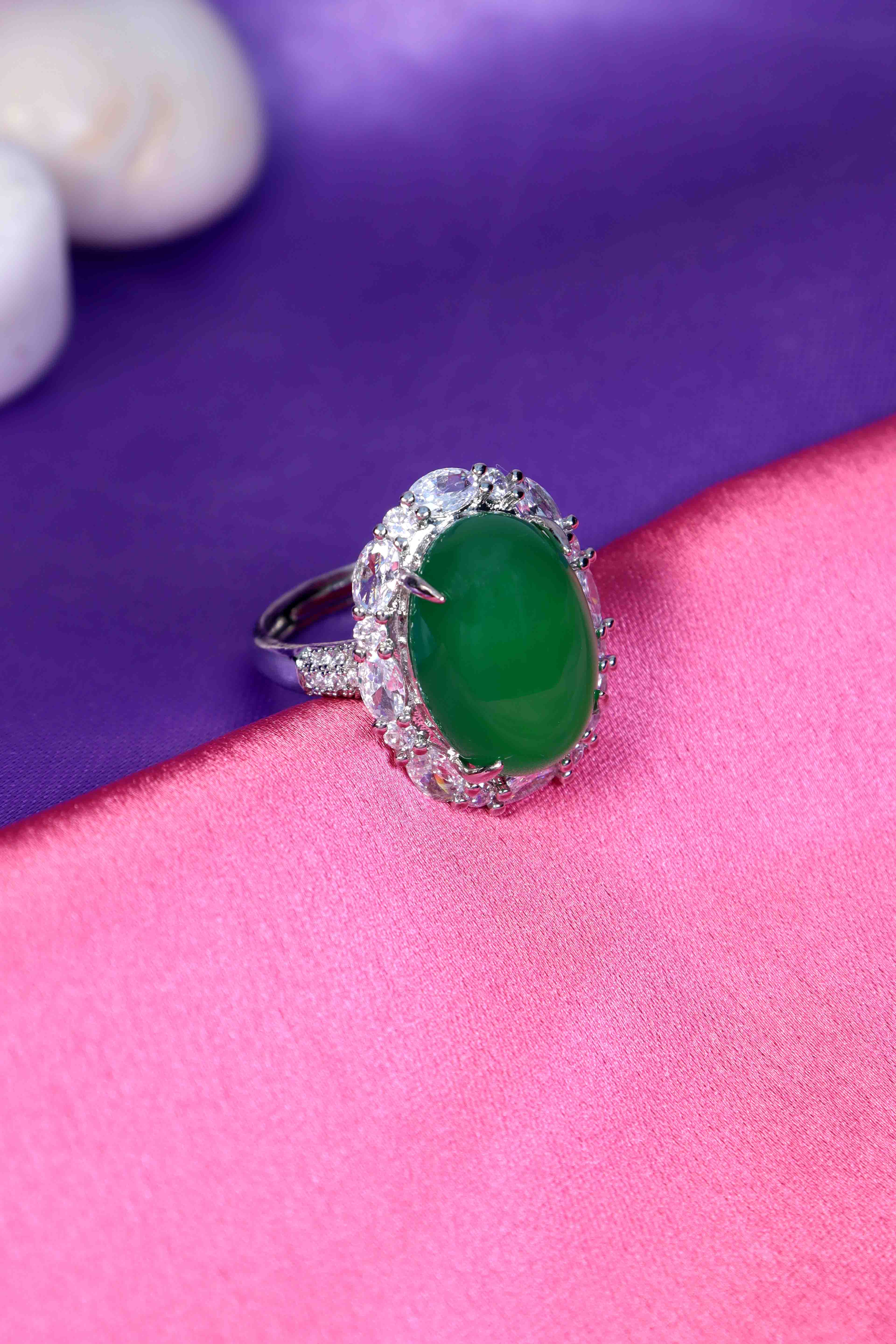 -Indulge in regal charm with the UNIHLC Emerald Shine Oval Ring featuring a vivid green center stone.