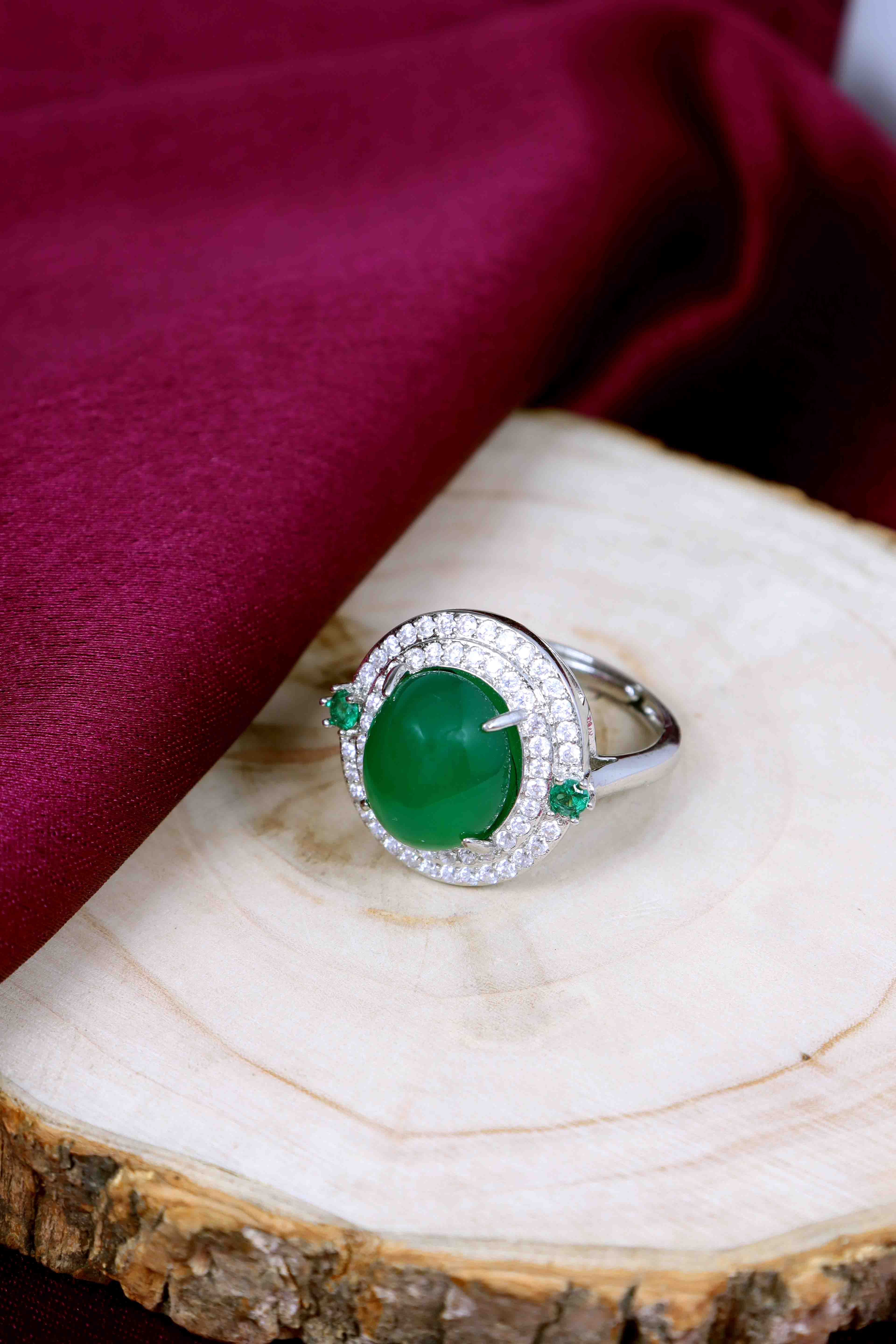 -Step into elegance with the UNIHLC Enchanted Emerald Oval Ring featuring a rich green center stone and CZ halo.