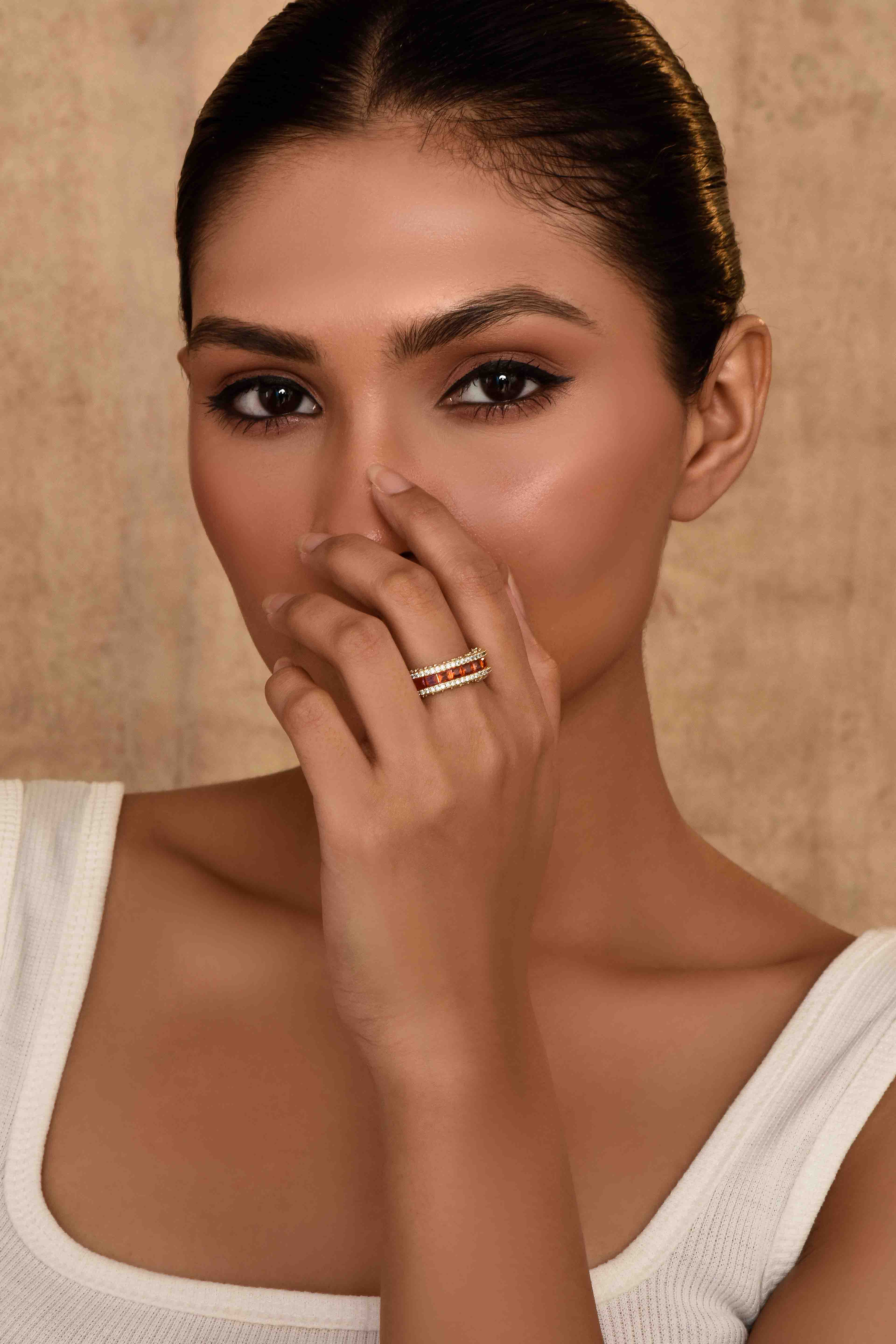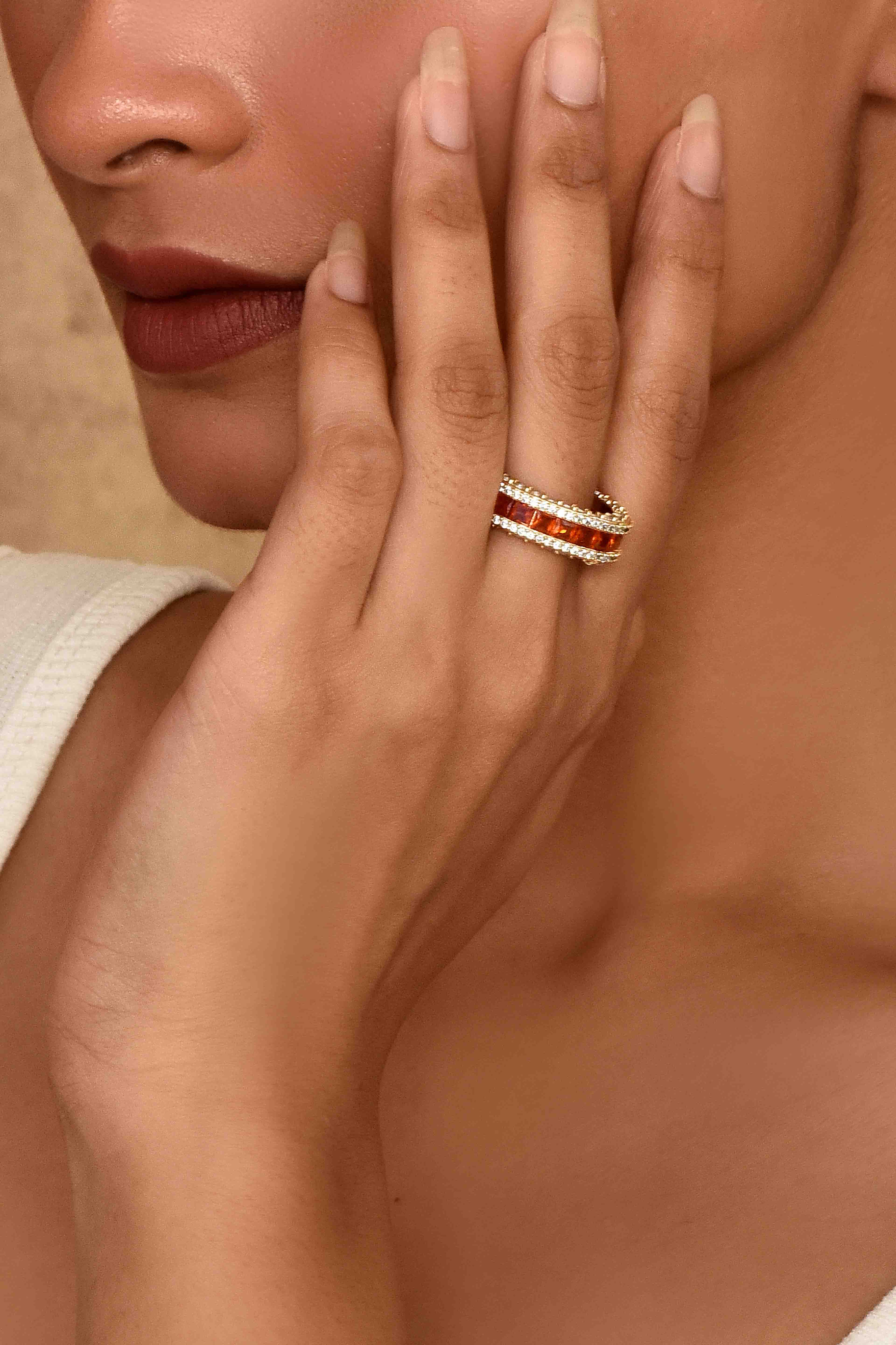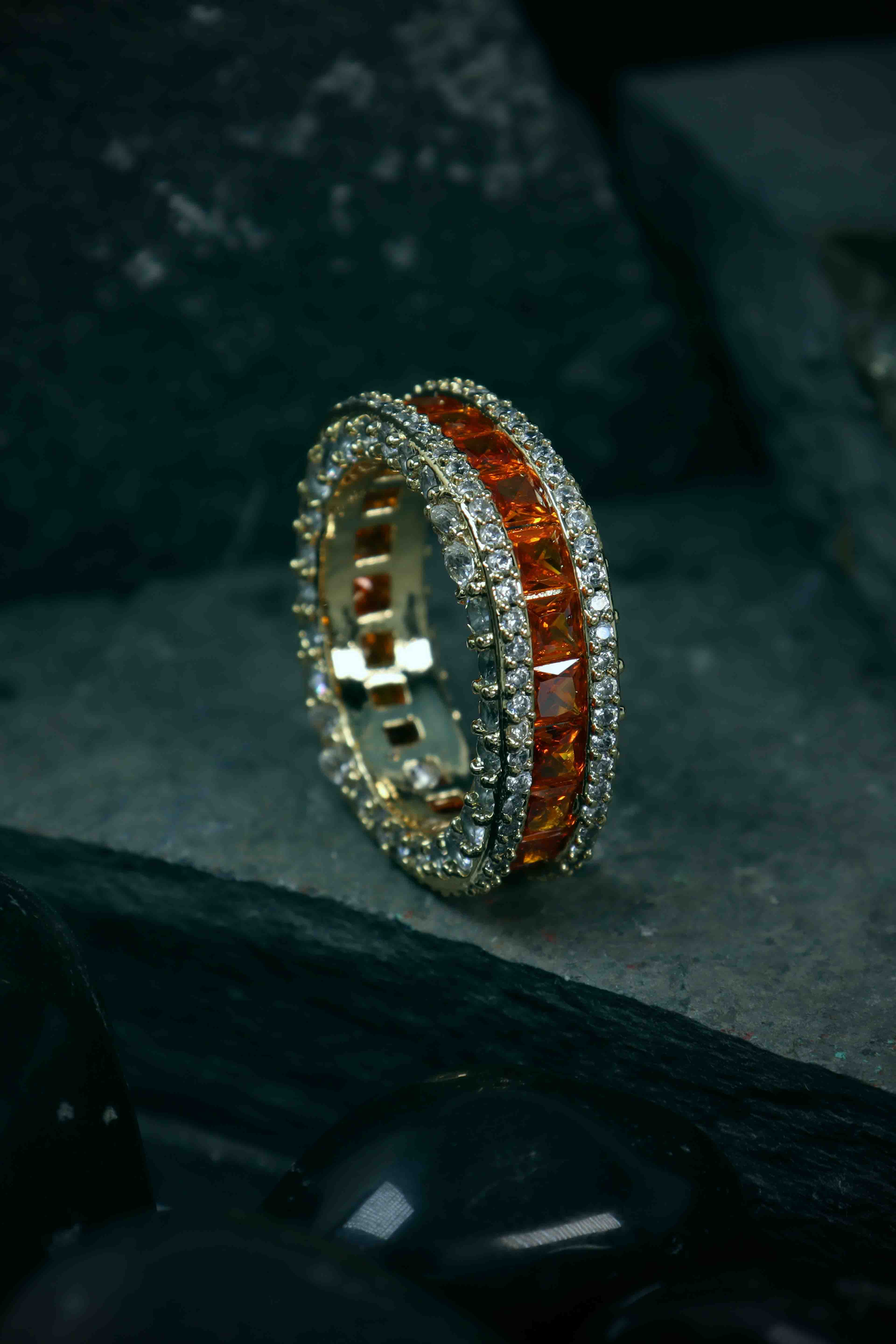 -A vibrant orange stone band accented with sparkling CZ crystals.