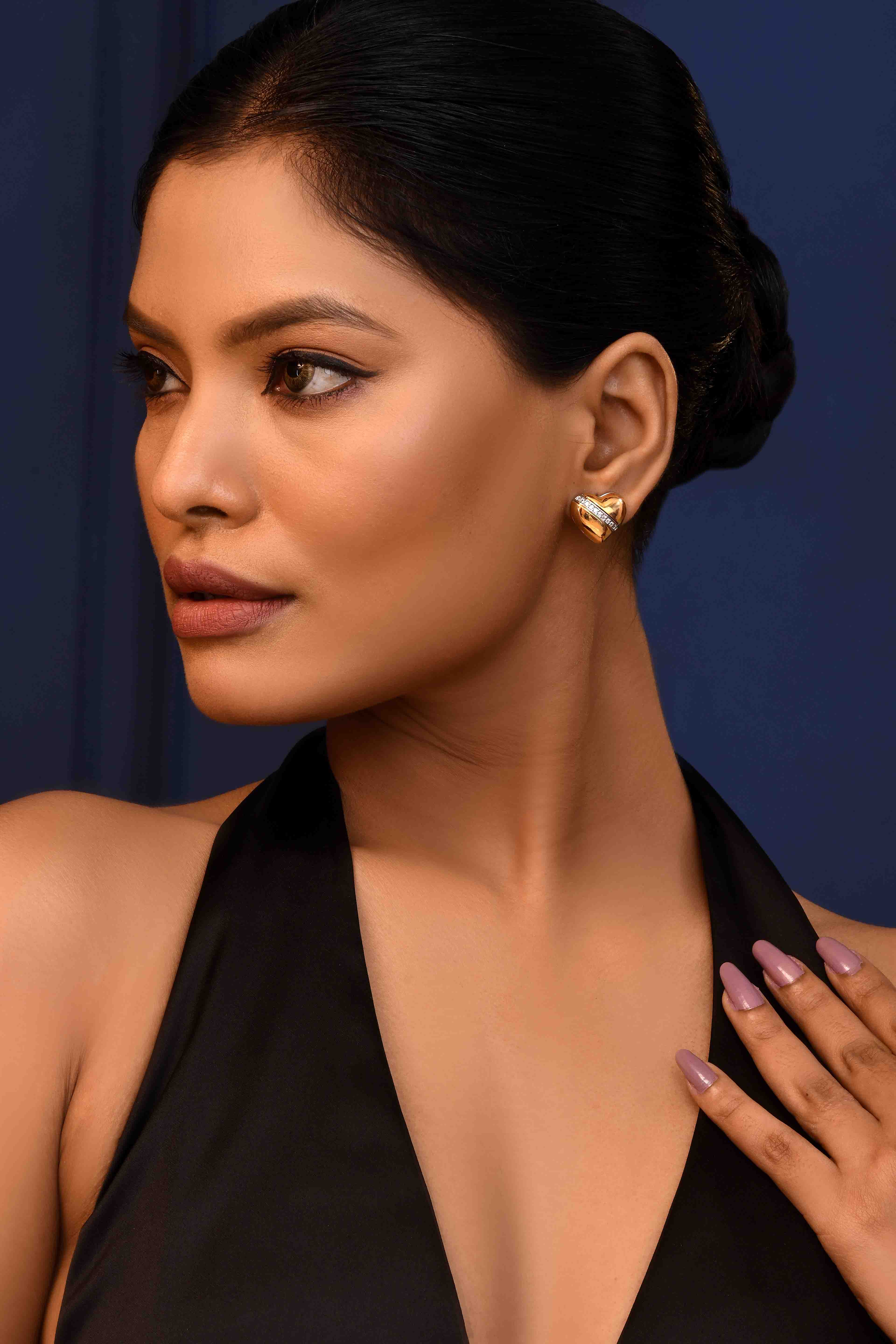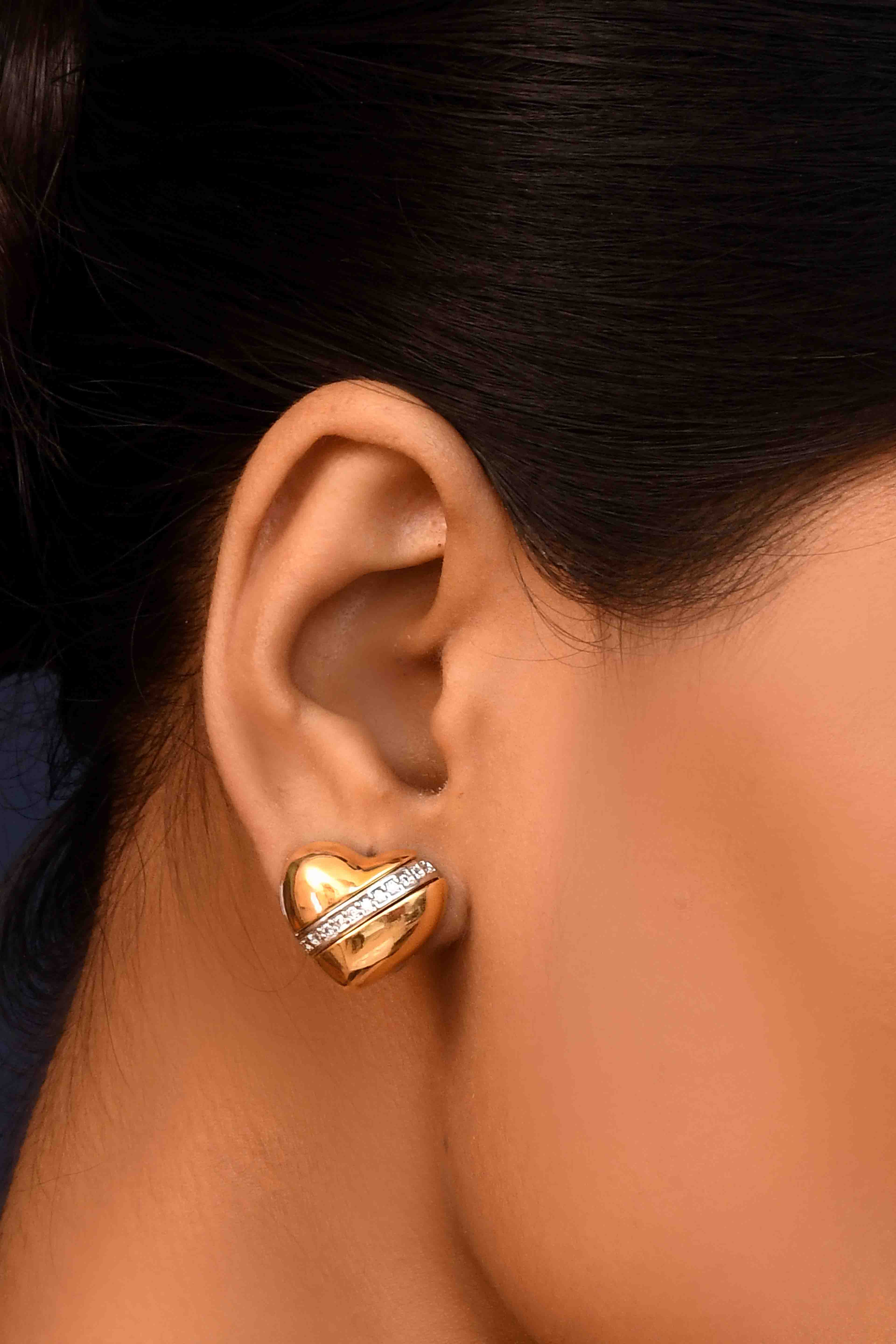 -Bold puffed heart-shaped stud with a sleek gold finish