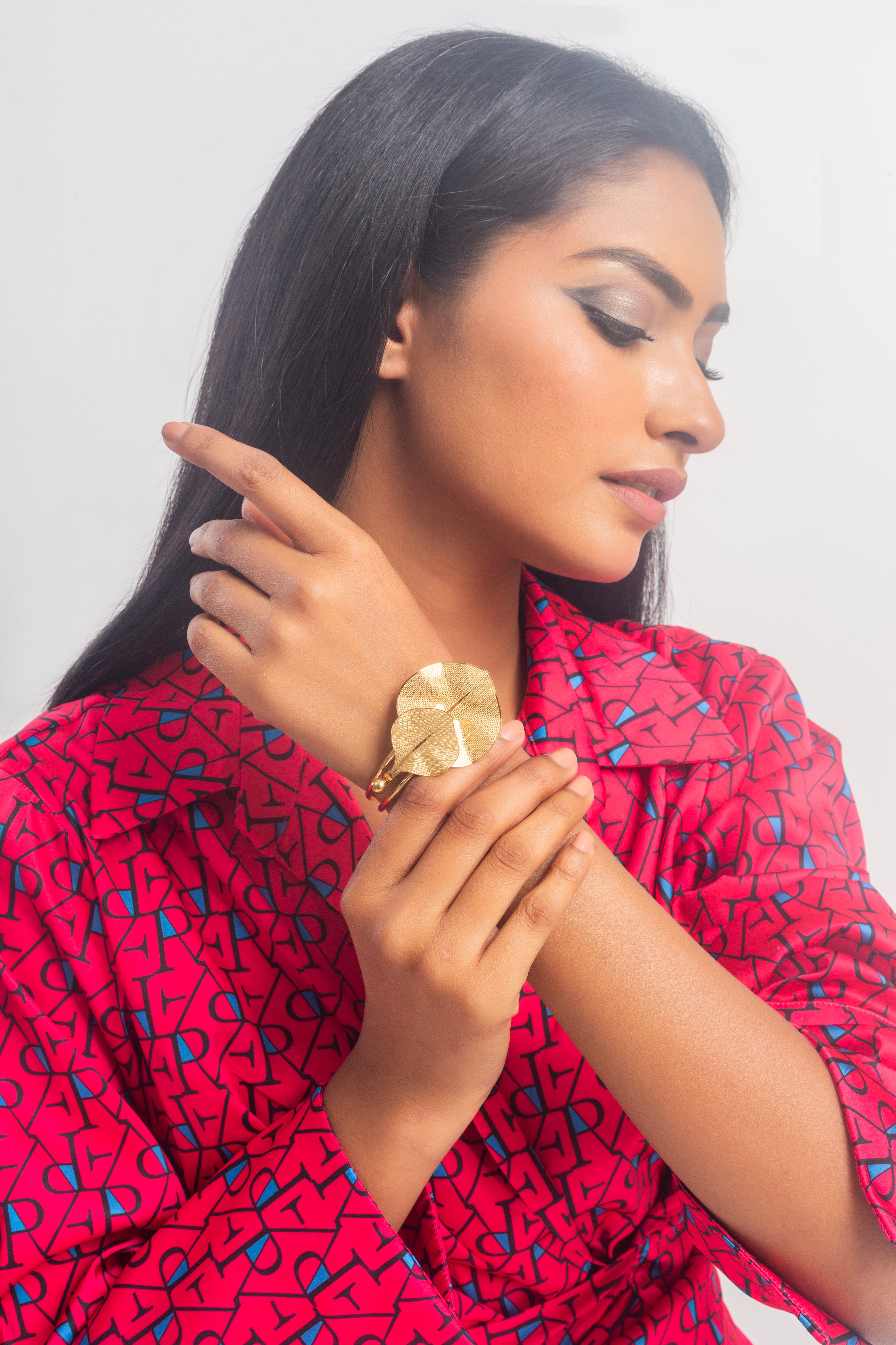 UNIHLC Gold Plated Leaf Cuff Bracelet