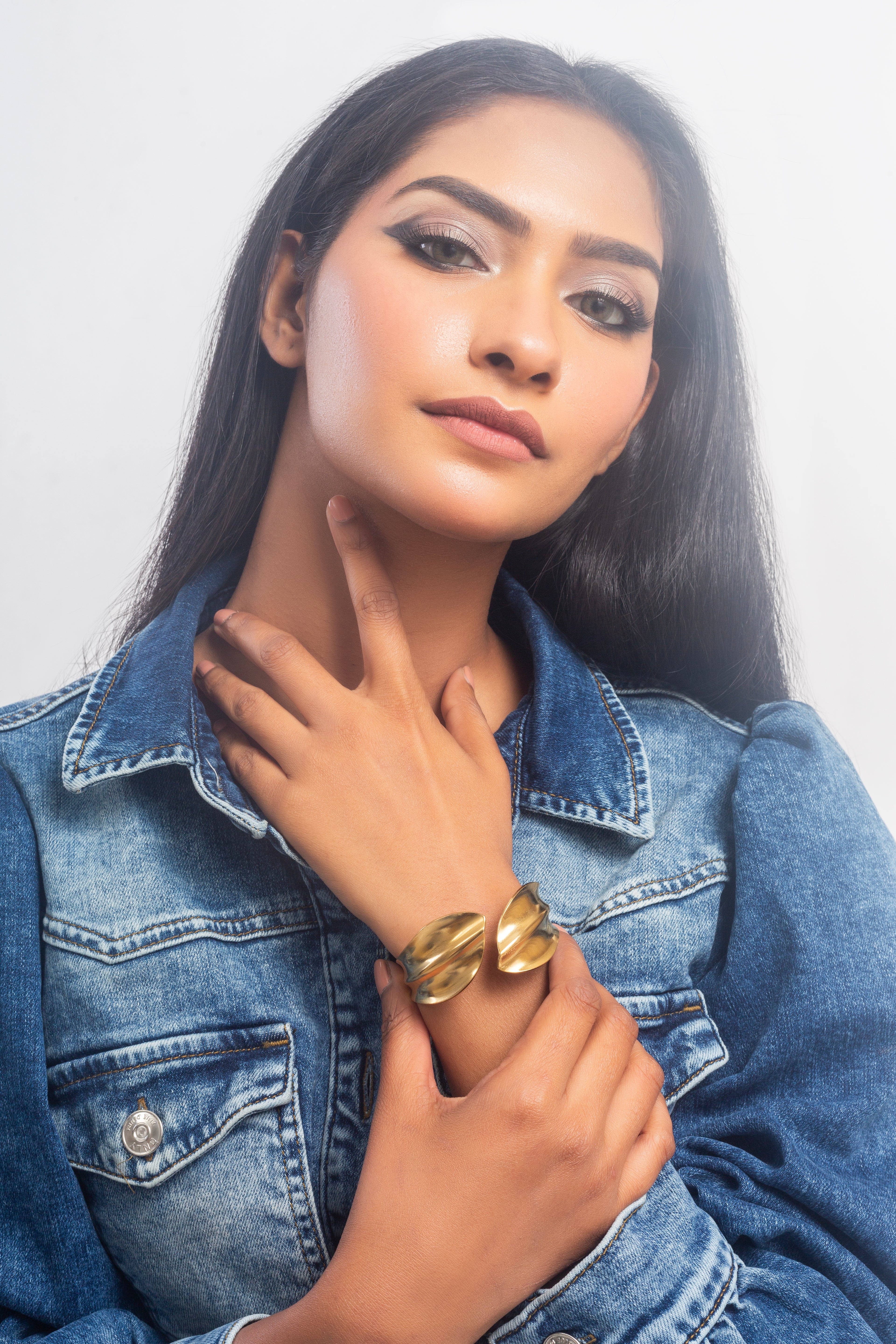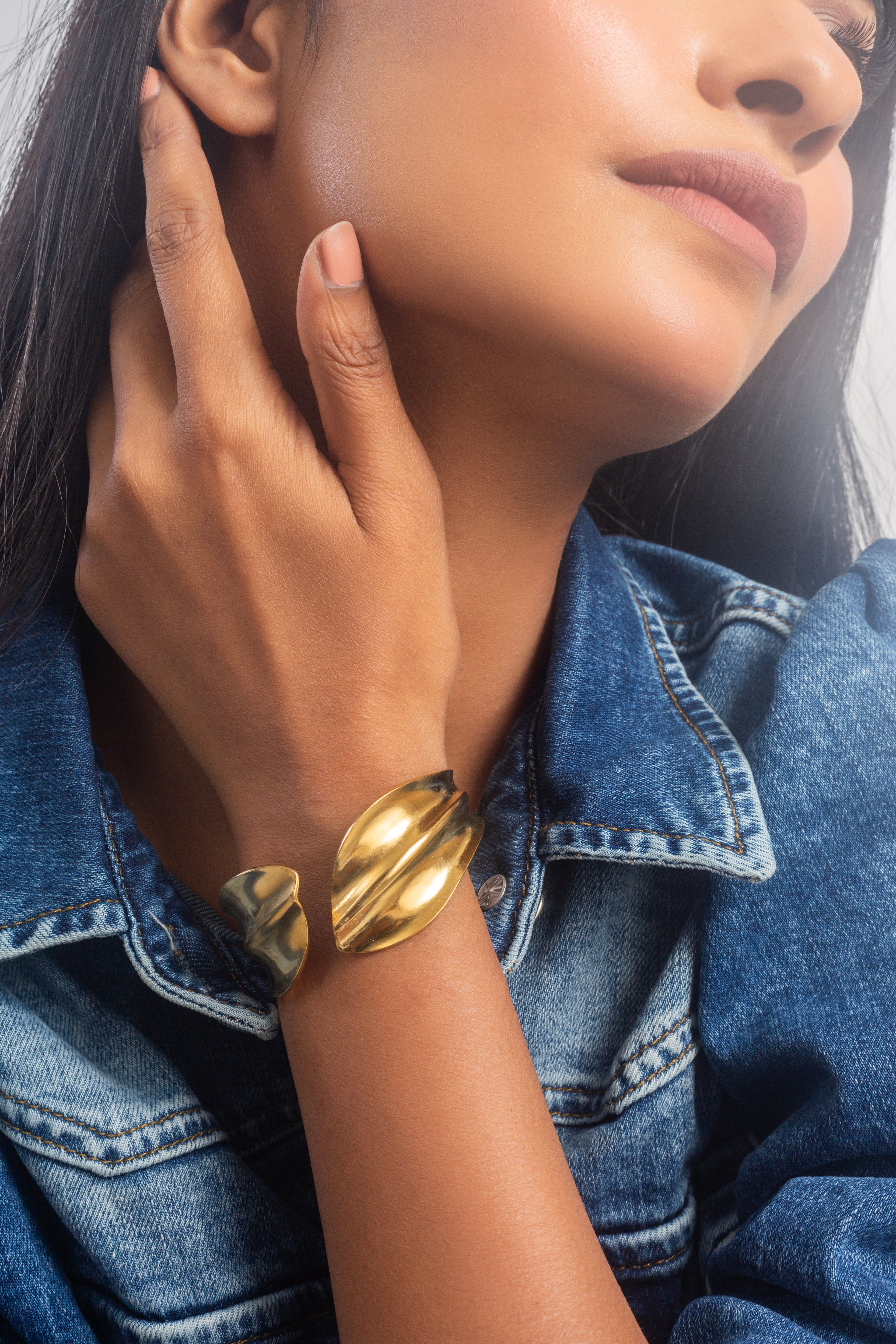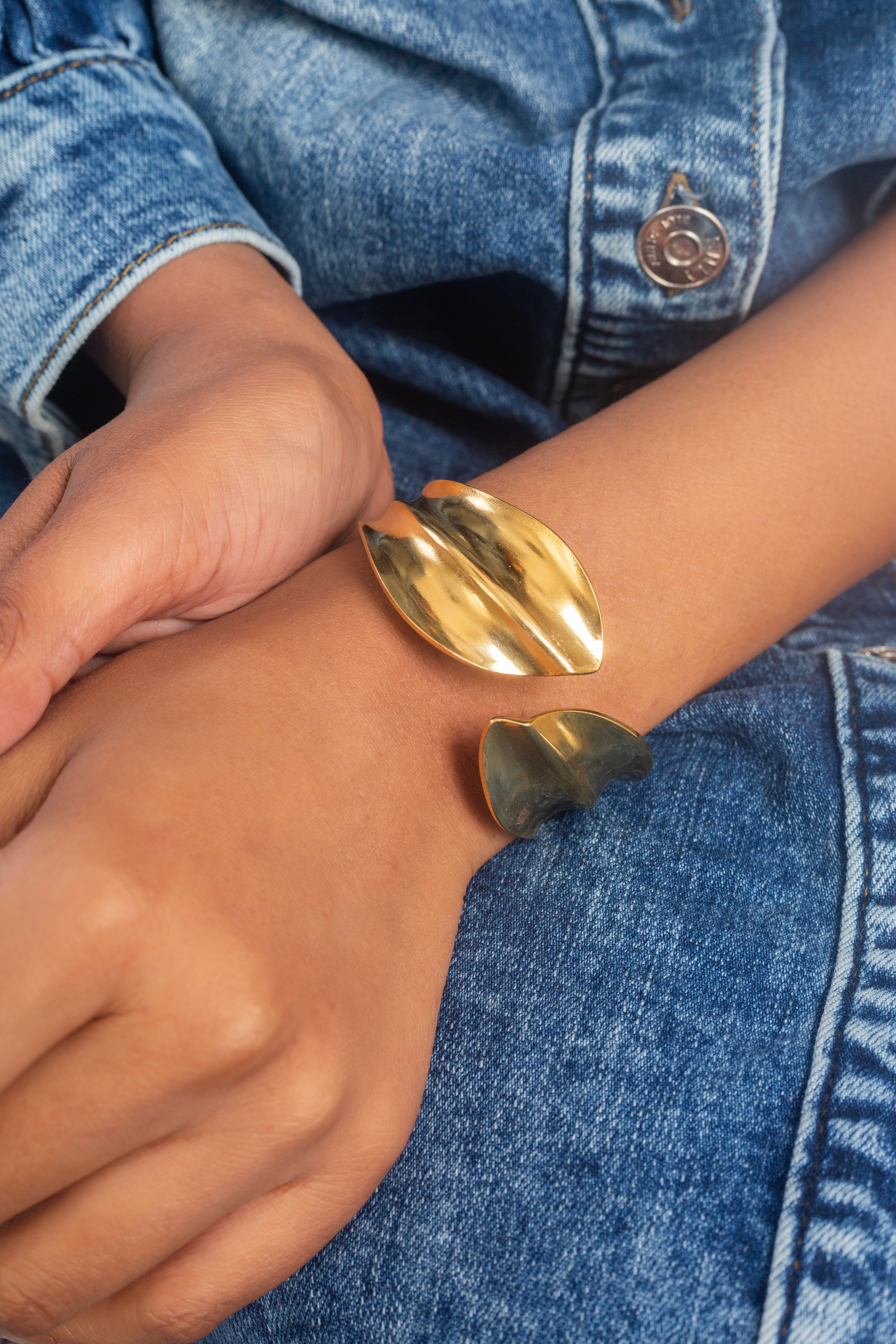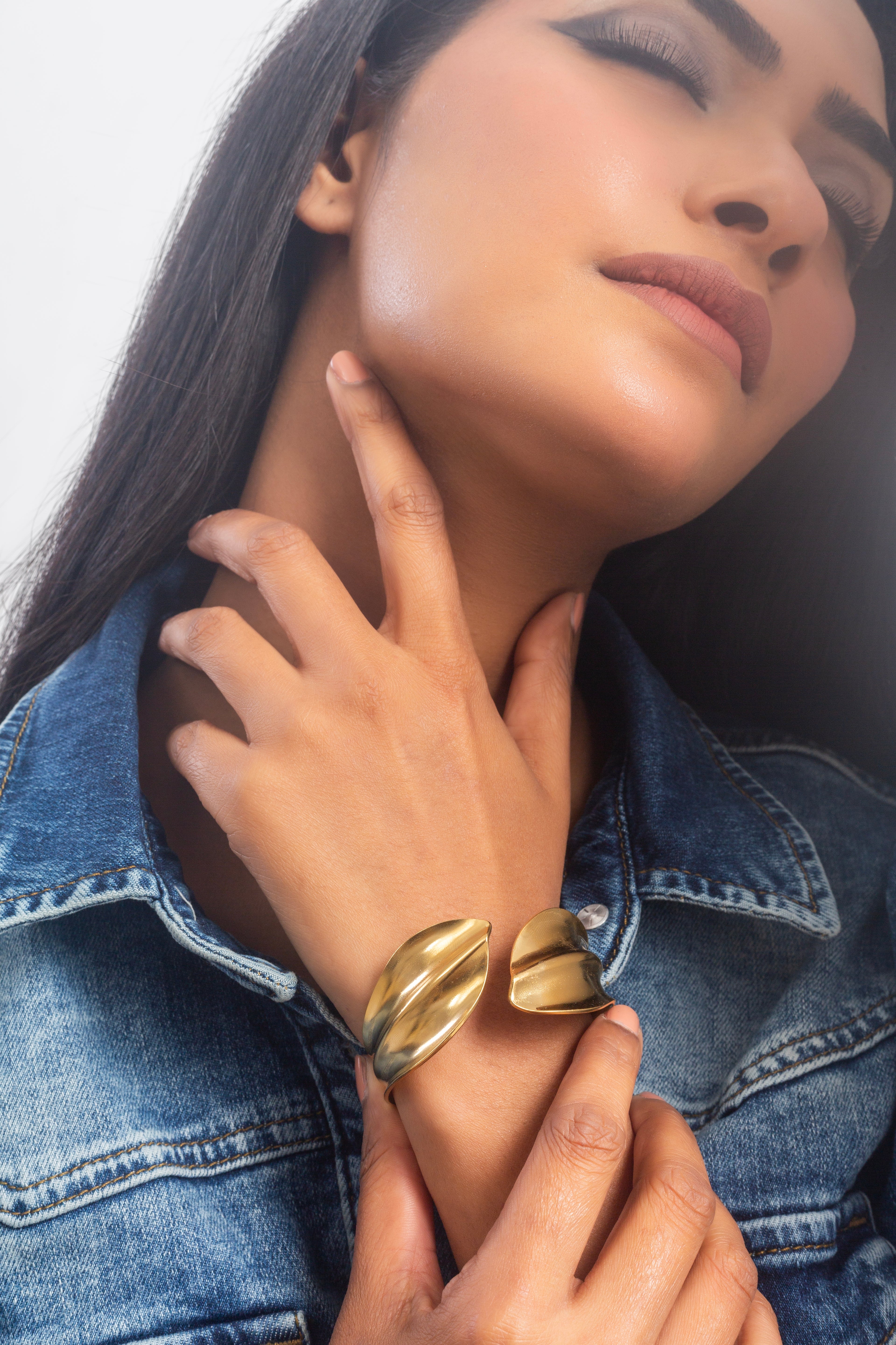 UNIHLC Gold Plated Leaf Cuff Bracelet