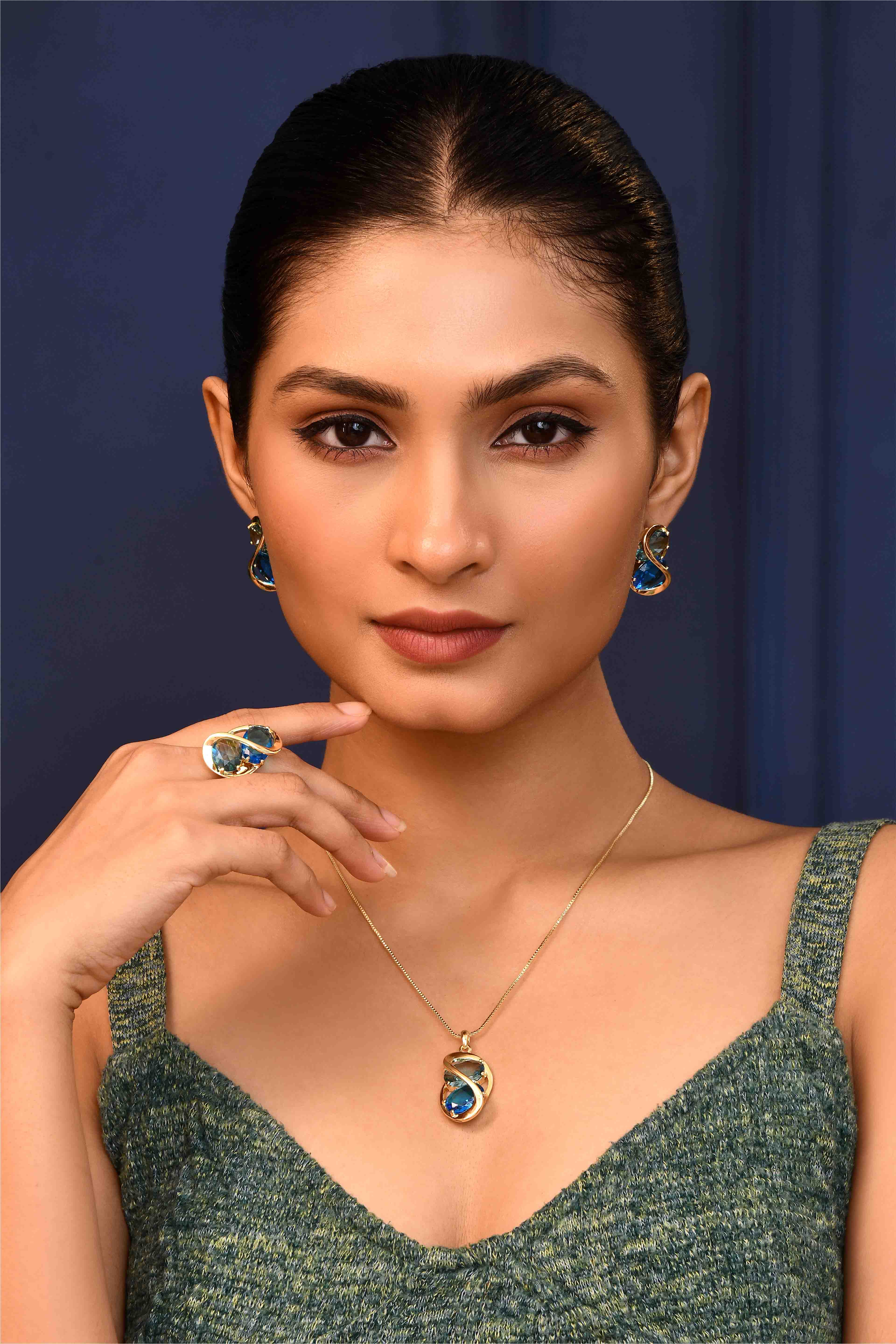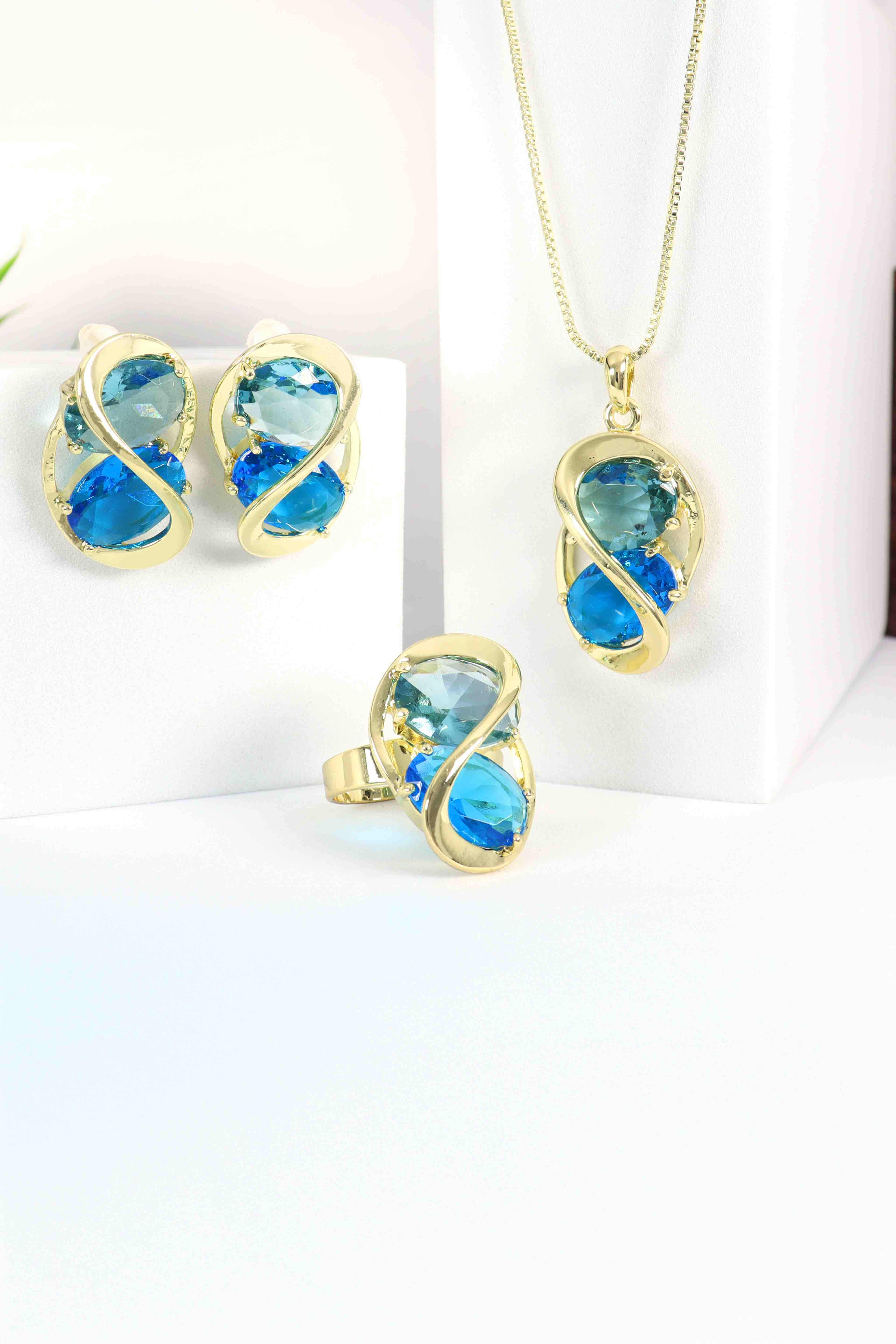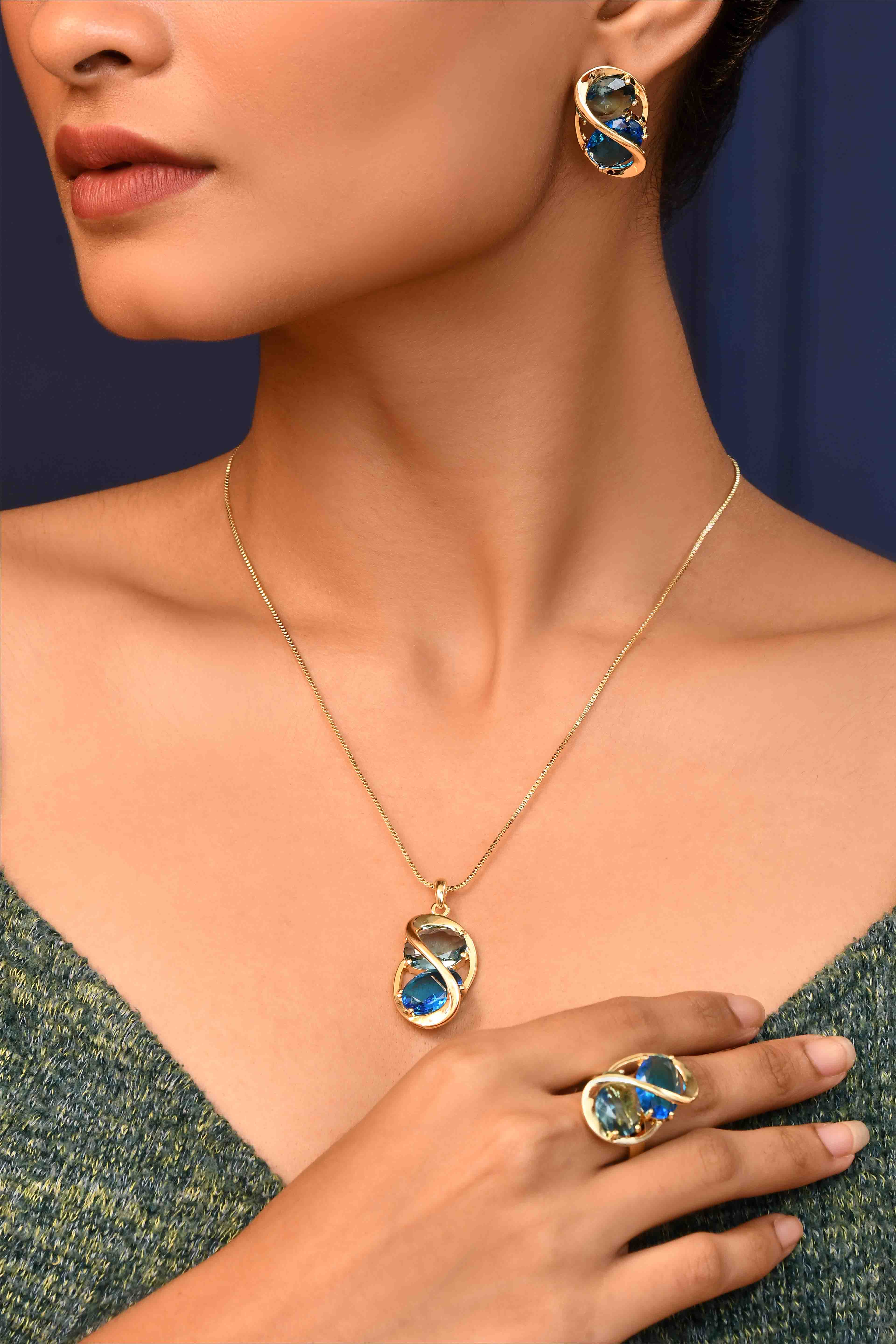 -Complete set includes matching pendant, earrings, and an adjustable ring