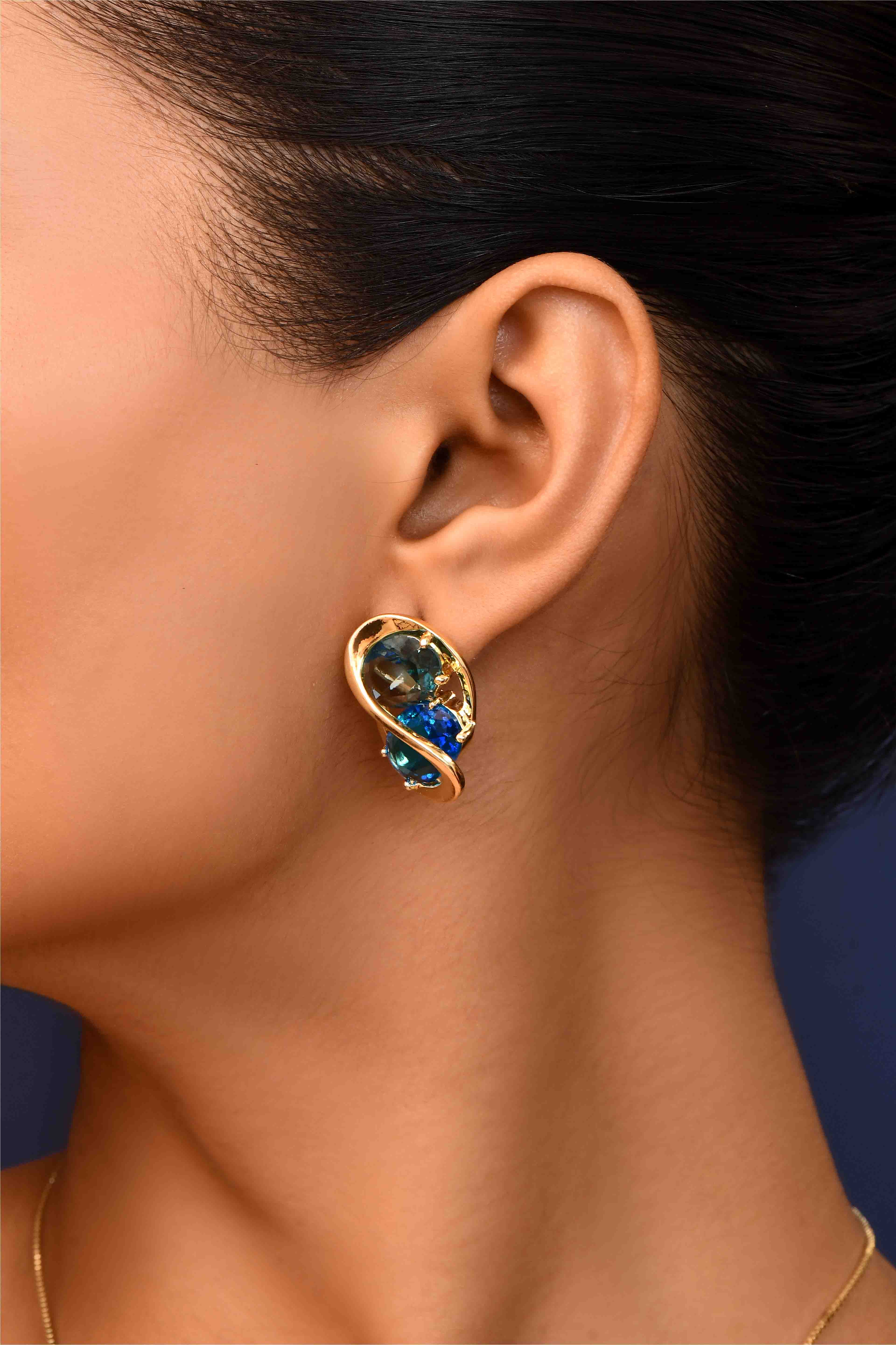-Features an elegant infinity design adorned with ocean-blue and sky-blue crystals