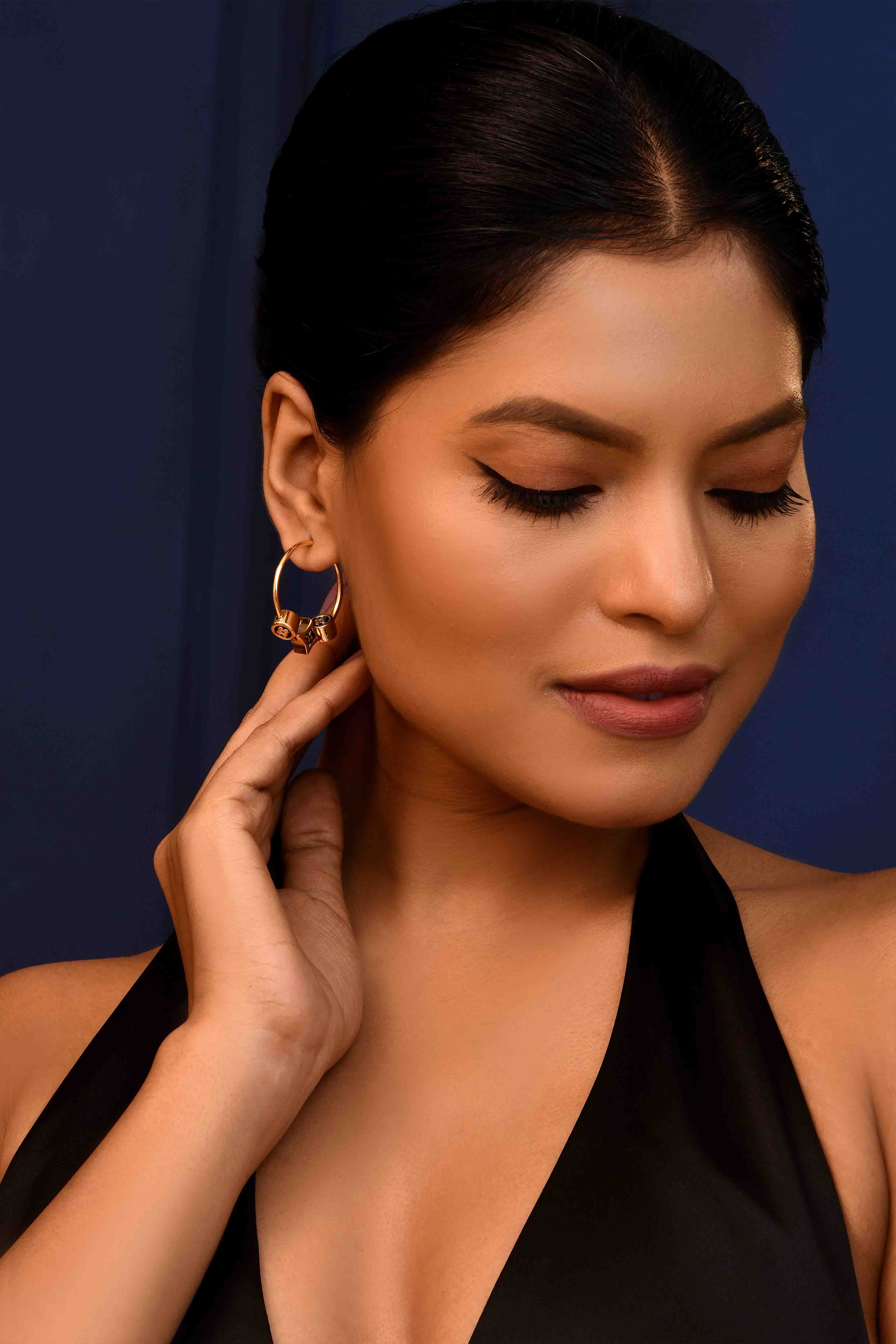 -Sleek gold hoop earrings with luxe emblem charms
