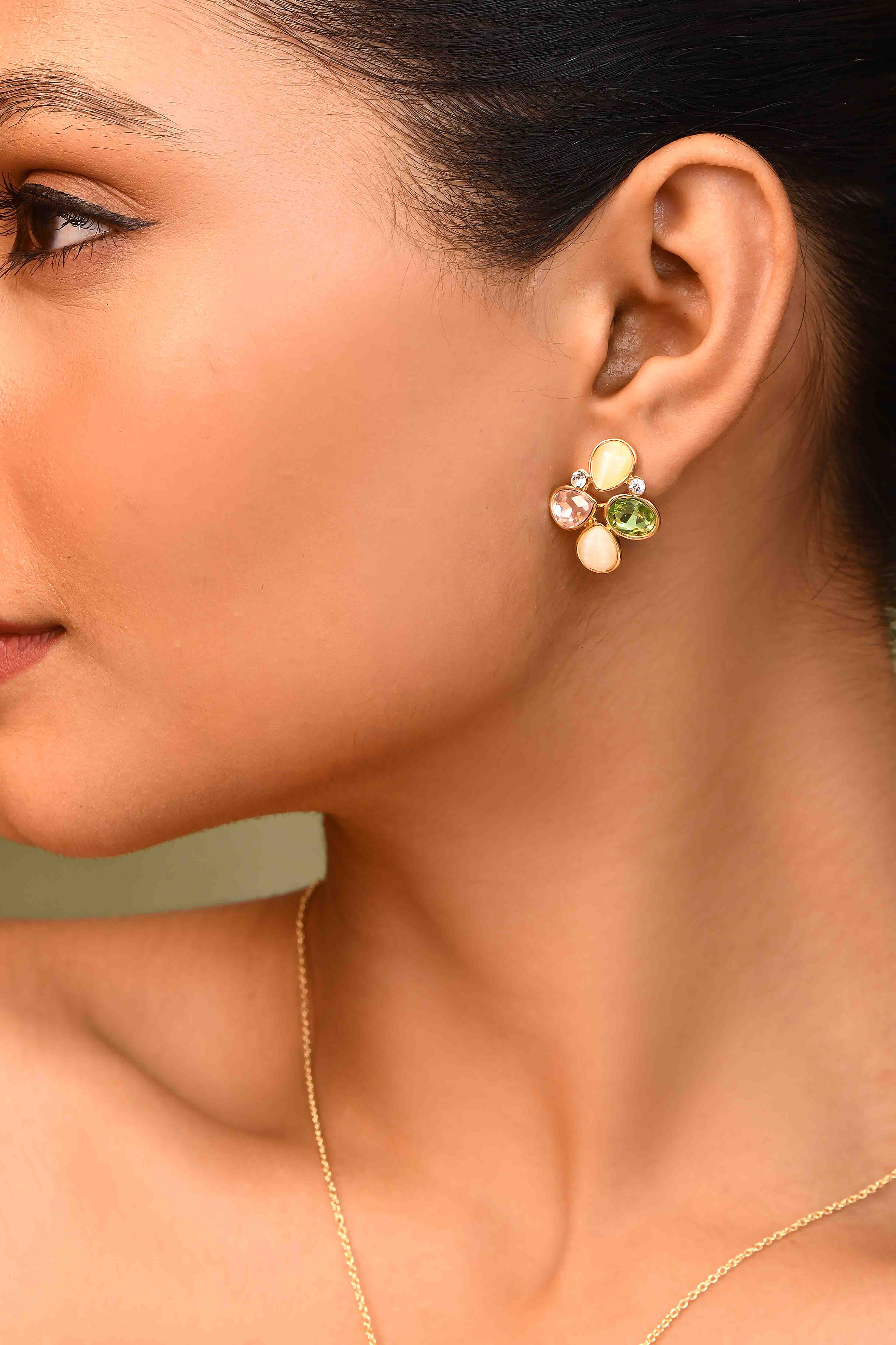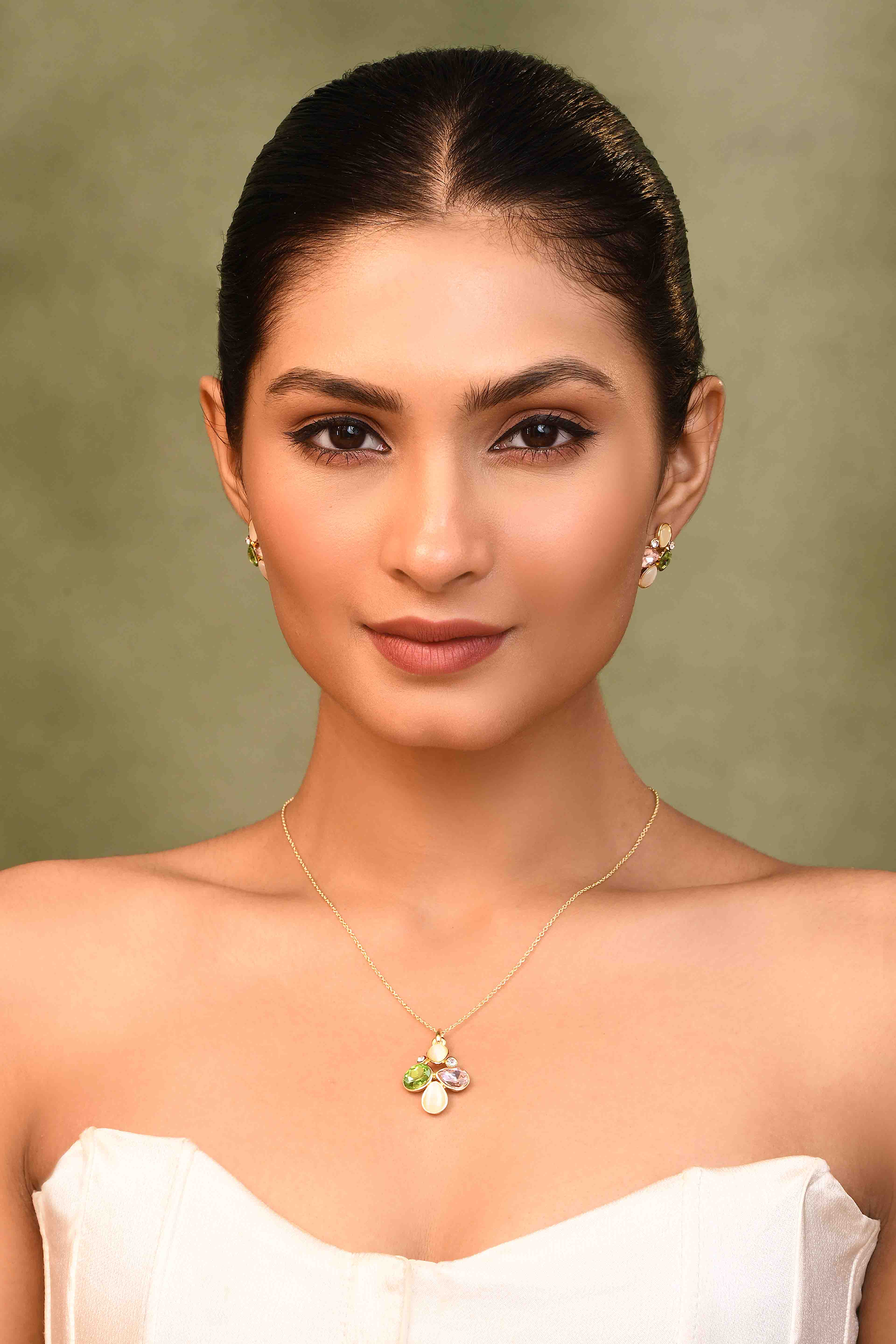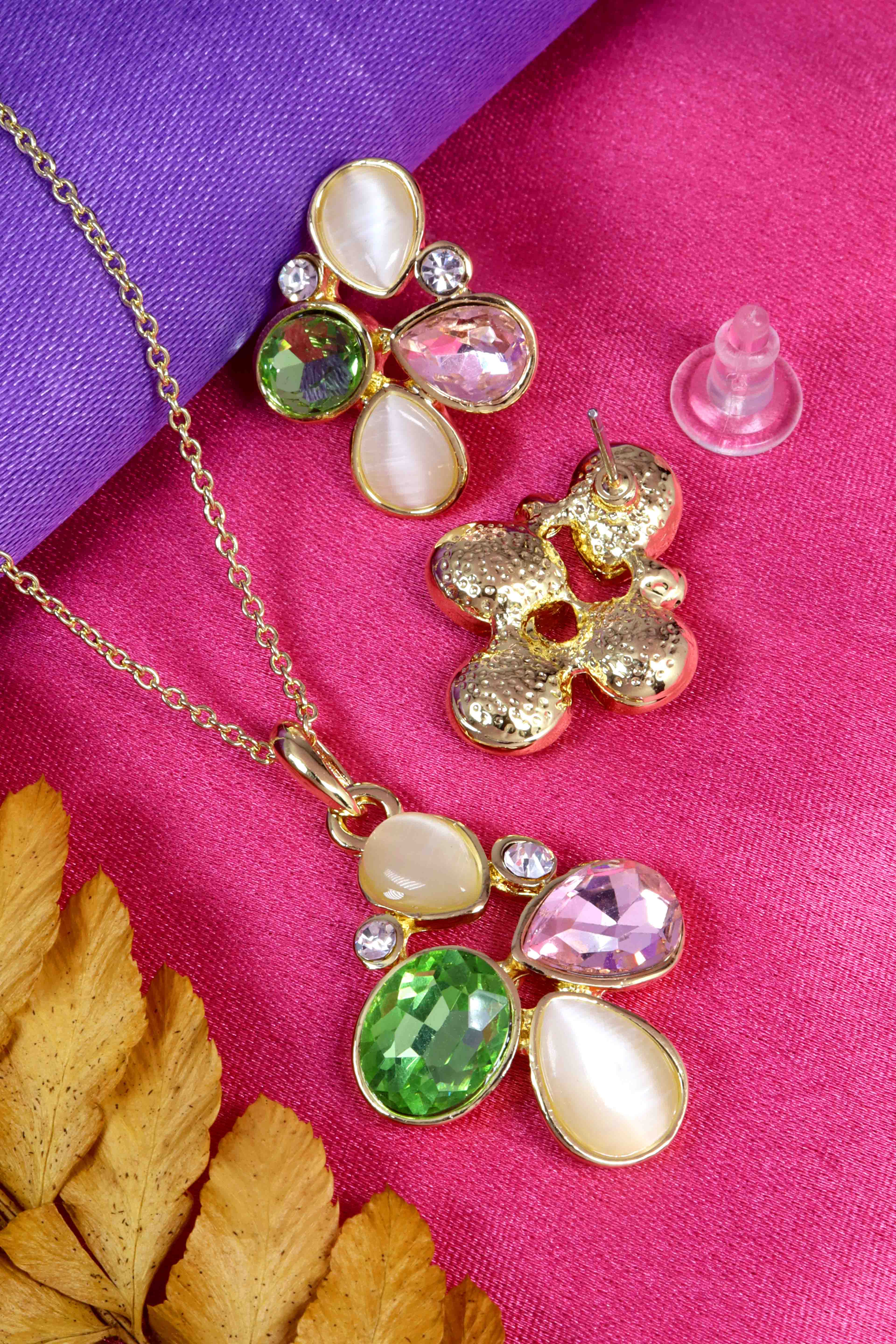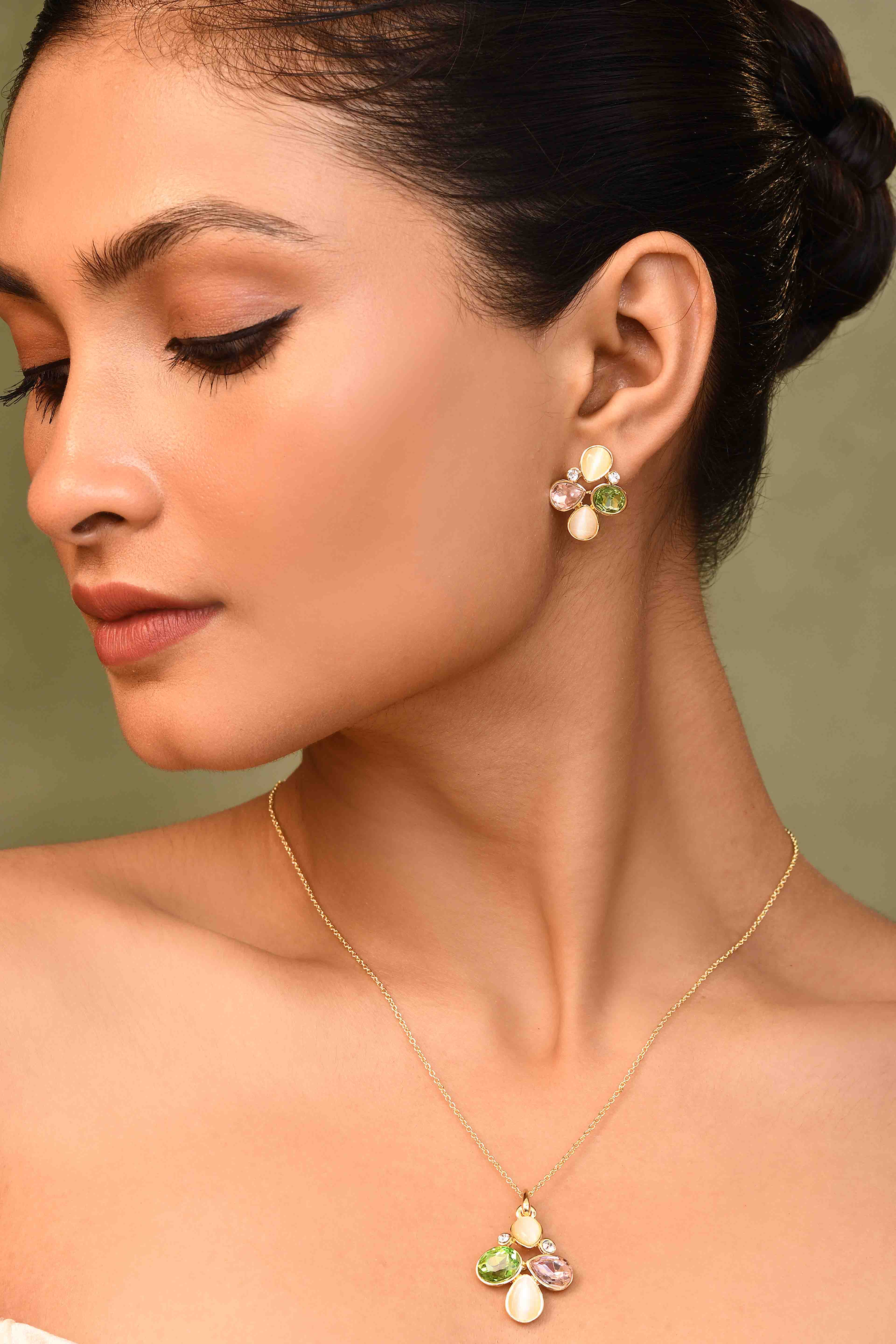 -Elegant trio of pastel stones in green, pink, and pearl finish