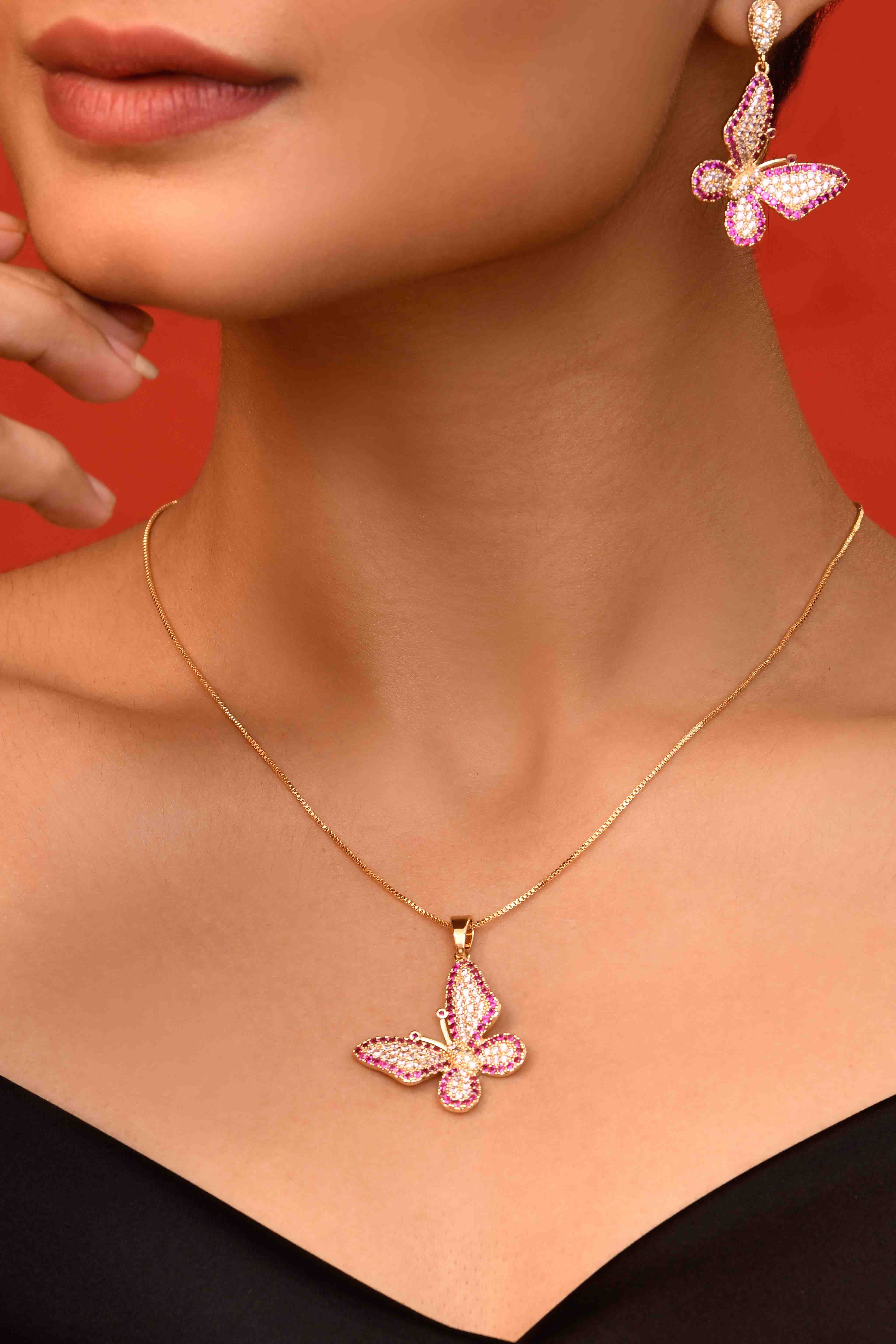 -Dazzling butterfly design encrusted with ruby and white CZ stones