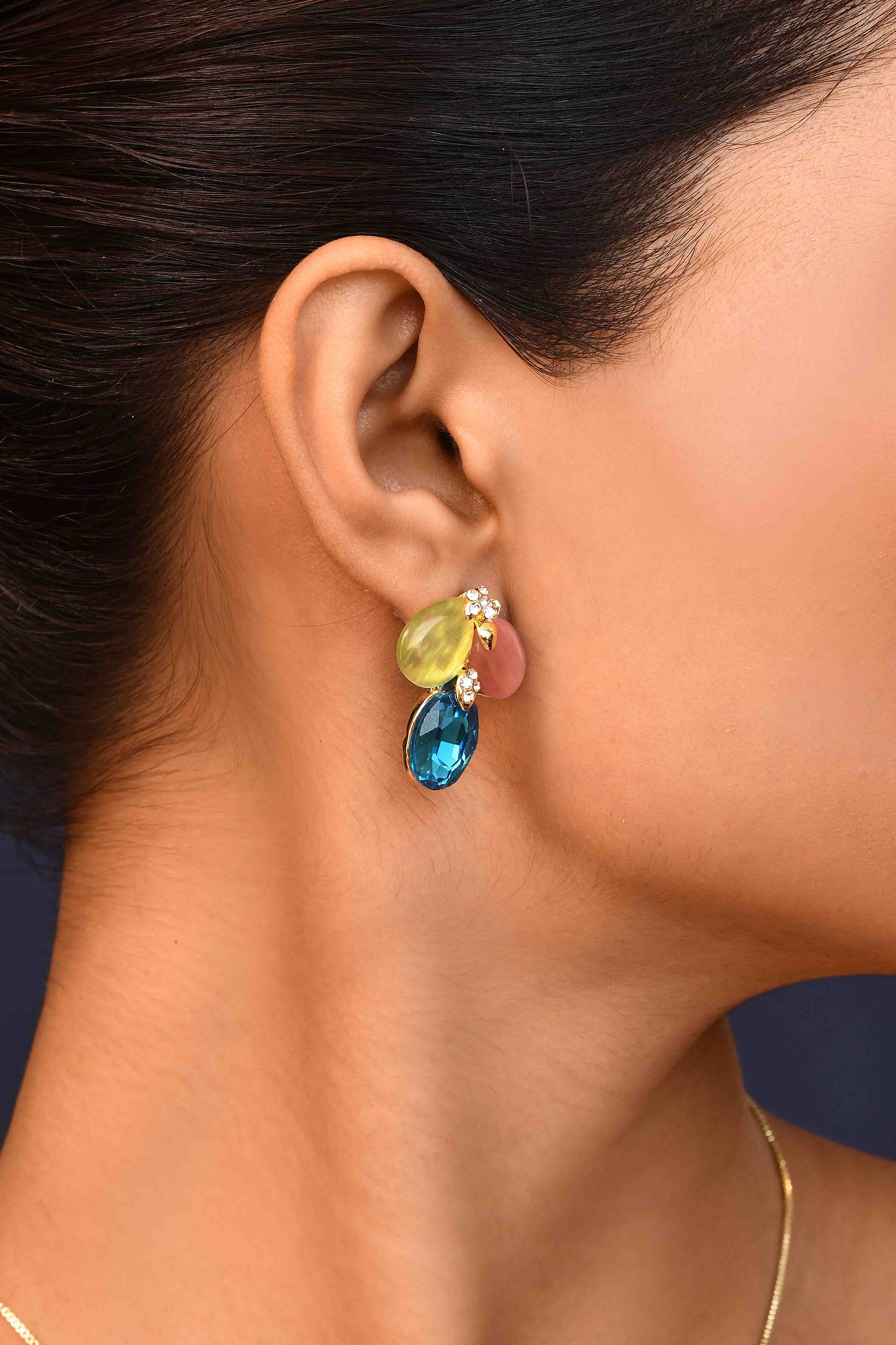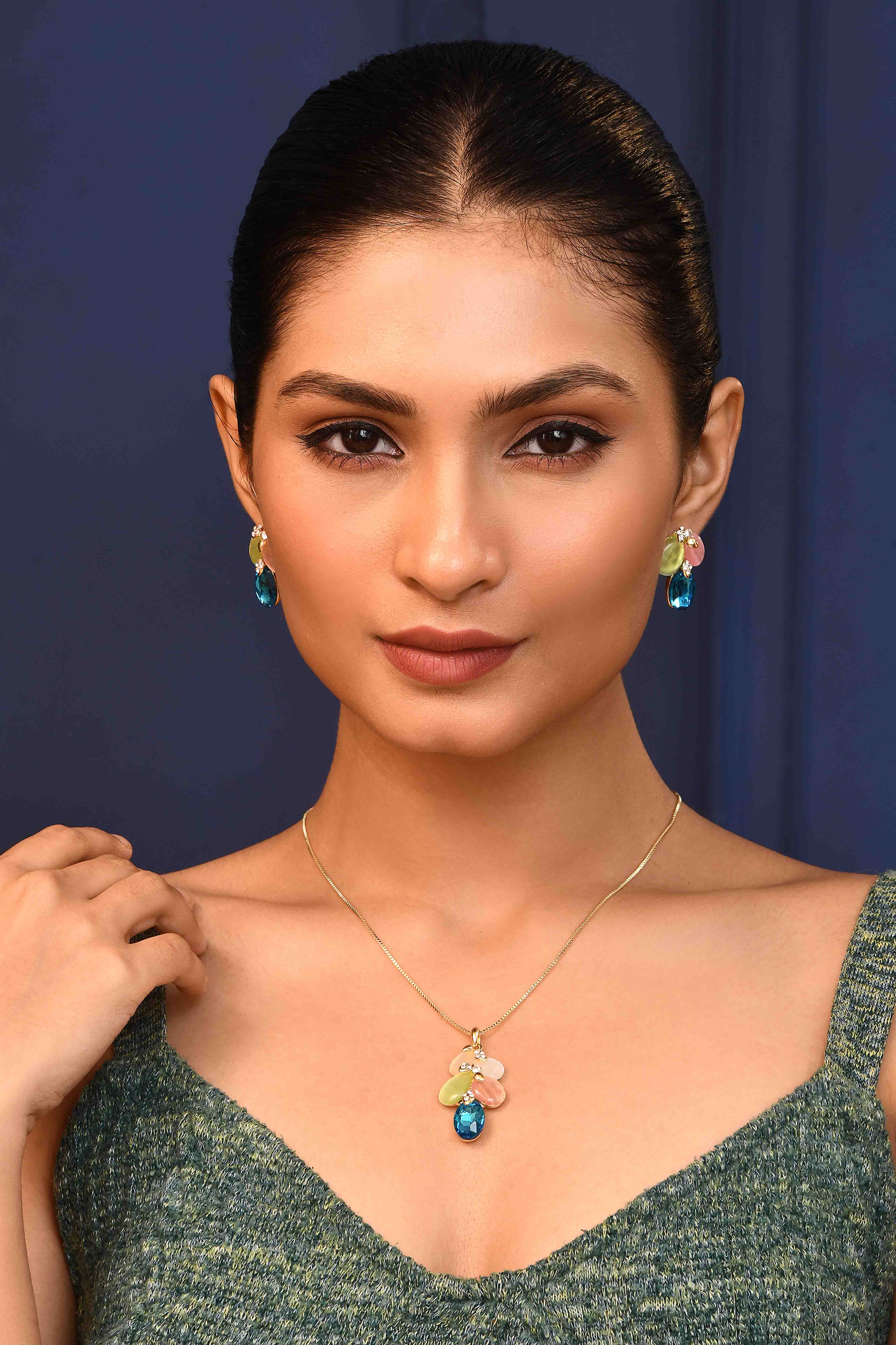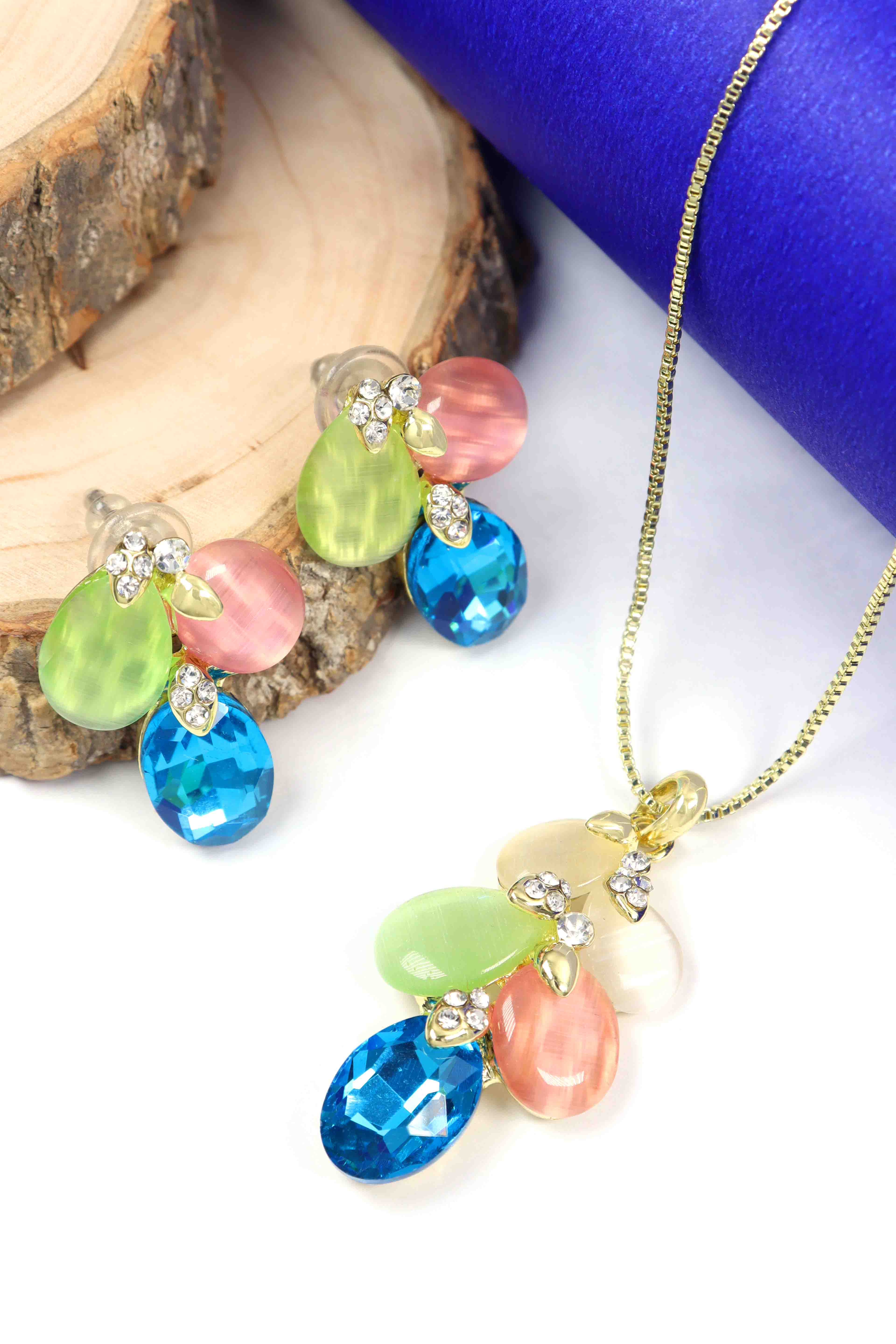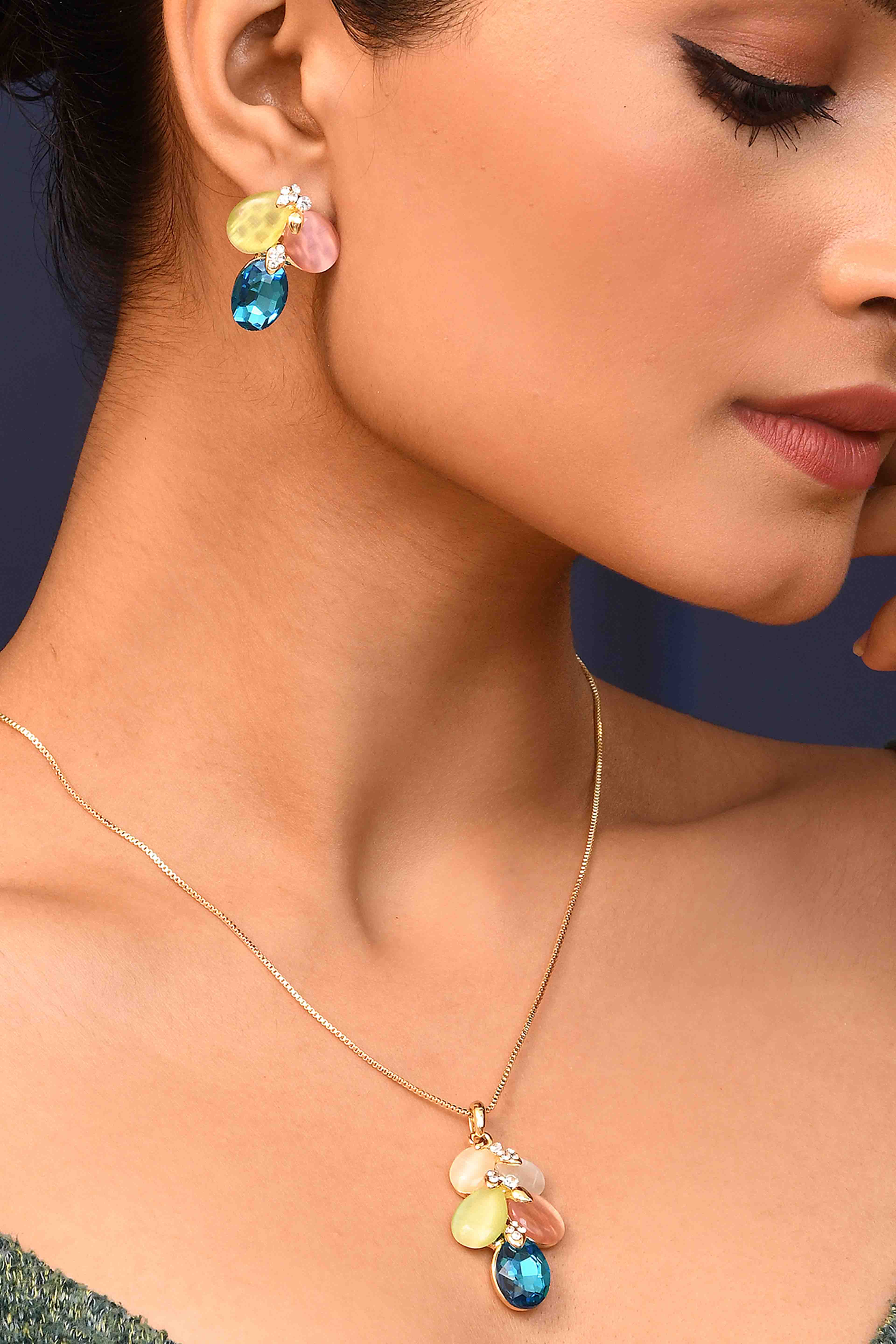 -Vibrant multi-stone pendant & earring set in pastel hues